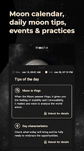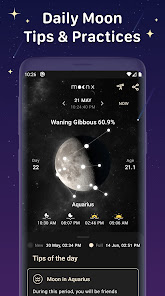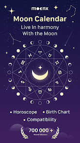 MoonX 앱에서 달의 위상 달력을 탐색하고, 긍정적인 확언을 표시하고, 점성술 조디악 차트와 별자리 일치를 생성합니다.