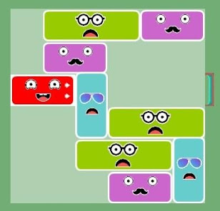 The goal is to get the red block out of the board by sliding the other blocks out of its way.