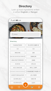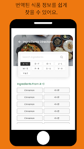 ● 저희 사전을 사용하여 재료 검색. 한국어 또는 영어로 검색할 수 있습니다.