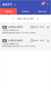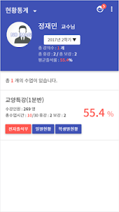 교원은 본 시스템을 활용하여 편리한 출석체크가 가능하며, 이외에도 개별학생의 정보 및 출석현황을 확인할 수 있습니다. 또한, 본인의 수업별 출석현황통계 확인 및 휴·보강 관리가 가능하며, 수강생에게 메시지를 전송할 수 있습니다.