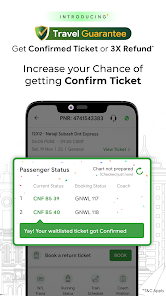 ConfirmTkt 앱에서 IRCTC 열차표의 PNR 현황을 빠르게 확인하실 수 있습니다. 또한, PNR 현황 및 열차 시간 또는 노선 변경 알림을 통해 즉시 업데이트를 받으실 수 있습니다. 티켓이 대기 목록에 있는 경우 기차표 확정 예측도 확인할 수 있습니다.ConfirmTkt에서 예측한 기차표 확정 가능성이 낮고 ConfirmTkt의 동일 열차 대체 기능을 통해 확정된 티켓을 찾을 수 없는 경우 대체 티켓을 준비하는 것이 좋습니다.