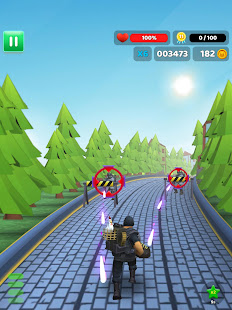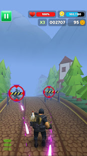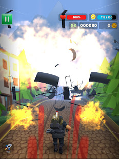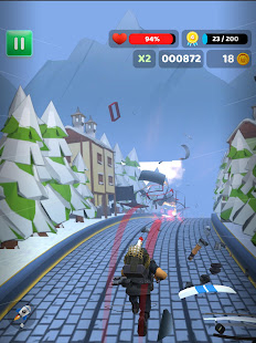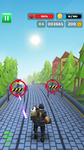 러너 게임이지만 다른 게임과는 다릅니다. 여기 당신은 적과 화난 닭으로부터 자신을 보호합니다 :