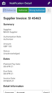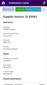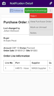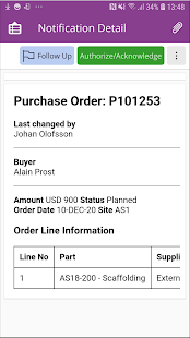 IFS Notify Me에서 비즈니스 이벤트 알림의 전체 세부 정보를 IFS Aurena에서 볼 수 있습니다. 사용자가 IFS Aurena 클라이언트에서 작업으로 표시되는 후속 조치에 대한 알림을 표시 할 수도 있습니다.