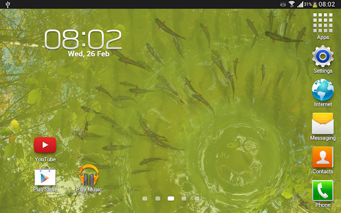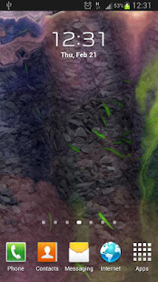 최고 품질의 HD 그래픽 및 OpenGL 2.0 기술을 기반으로 상호 작용하는 잔물결 및 행복하게 홈 화면을 탐험 물고기의 학교와 아름다운 라이브 배경 화면.