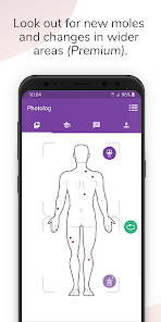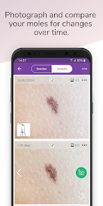 - 피부의 두더지 및 기타 병변에서 감지된 변화를 추적합니다.
