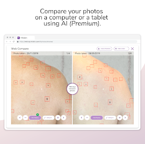 - 태블릿이나 컴퓨터의 브라우저에서 Miiskin 앱 사진에 액세스하세요. 더 큰 화면에서 피부 변화를 확인하고 전신 이미지를 고화질로 비교할 수 있는 매우 유용한 기능입니다.