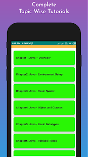 또한,이 응용 프로그램은 매우 간단한 사용자 인터페이스를 가지고 있으며 내용은 사용자가 쉽게 이해할 수 있습니다. 사용자는 온라인 Java 퀴즈 연습 및 Java 자습서 및 프로그램 학습을 위해 자신의 장치에 인터넷 연결이 필요하지 않습니다. 이 응용 프로그램은 완전히 무료로 다운로드하고 업데이트 할 수 있습니다.