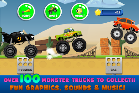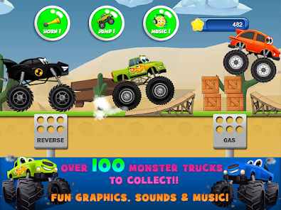 42 개 레벨에 걸쳐 100 개 이상의 멋진 몬스터 트럭이 타오르는 모습으로 유아들에게 즐거운 시간을 선사할 것입니다. 더 많은 몬스터 트럭이 항상 추가됩니다! 모두 모아보세요!