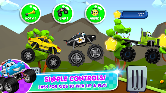2세에서 8세 사이의 어린이와 유아를 위해 설계되었으며 코스를 따라 몬스터 트럭을 운전하는 간단한 컨트롤. 트럭이 뒤집히지 않아 자녀가 항상 결승선에 도달할 수 있습니다!