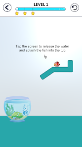 화면을 탭하여 물을 풀고 물고기를 수조에 튀기십시오. 많은 레벨이 있습니다. 재미있고 흥미롭습니다.