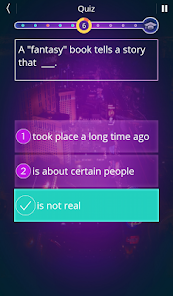 대화 상자, 발음 팁과 객관식 문제의 정의, 사진, 샘플 문장을 가진 새로운 어휘 용어.