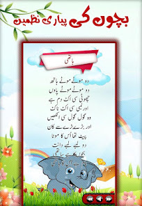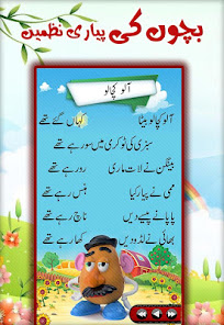 Bachon Ki Urdu Nazmain 에는 오디오 및 텍스트가 있습니다. 우르두어의 어린이시 : Urdu Nazmein 앱 에는 만화 사진에서 다른 캐릭터가 행동하는 만화 사진의 운이 포함되어 있습니다.
