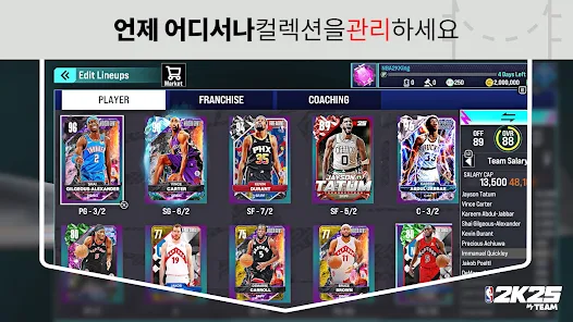 전설적인 NBA 농구팀이나 독창적인 팀을 구성해 순위표에 도전하세요. MyTEAM 앱은 콘솔 수준의 경쟁 재미를 모바일에서도 즐길 수 있도록 설계되어, 최고의 농구 게임 경험을 제공합니다.