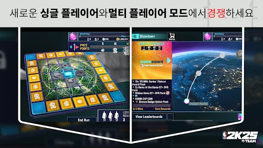 브레이크아웃 모드: 챌린지와 아레나가 가득한 농구 보드를 탐색하세요. 트리플 쓰렛(3v3), 클러치 타임(5v5), 시간 단축 풀 NBA 라인업 매치에서 독점 보상을 획득할 수 있습니다.