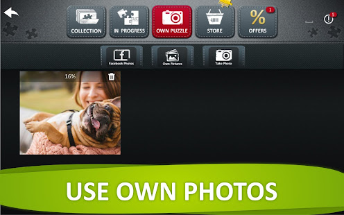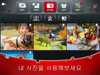 스마트폰에 저장된 이미지, 페이스북 페이지의 이미지나 앱으로 찍은 사진으로 나만의 직소 퍼즐을 만들어 보세요.