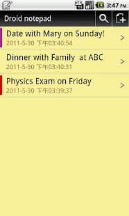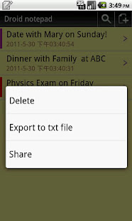 The user interface of Droid Notepad is designed to be simple and effective, there is no complex operation.