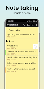 Droid Notepad is a note taking app for Android. It allows you to take notes quickly any time.