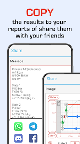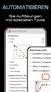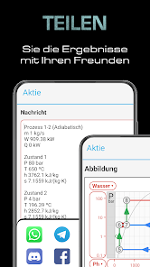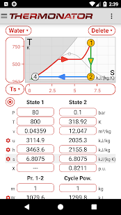 -선형 및 로그 스케일, 자동 확대 / 축소 및 드래그 가능한 눈금자가있는 대화 형 다이어그램 (압력-볼륨, 온도-엔트로피, 엔탈피-엔트로피, Mollier 등).