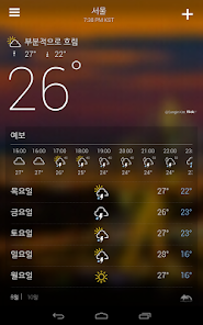 수많은 새로운 기능과 함께 현재 날씨 상태와 일치하는 근사한 사진과 새로운 디자인을 특징으로 높게 인정받는 야후 날씨 앱을 이제 Android에서 이용하실 수 있습니다. 전에는 경험하지 못한 아주 새로운 날씨 앱입니다. 살짝 밀어 가장 정확한 일기 예보를 보거나 바탕 화면 위젯을 추가하여 최신 날씨 정보를 보세요. 어디에 가든 근사한 예보를 보실 수 있습니다.