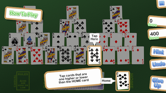 가장 스페 솔리테어 게임, 안드로이드에서 사용할 수! 홈 카드 위 또는 아래에 카드를 하나를 클릭하여 세 정상에 당신의 방법을 취소합니다. 그러나 신중하게 계획 또는이 정상에하기 전에 갑판 밖으로 실행할 수 있습니다!
