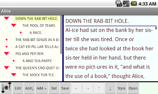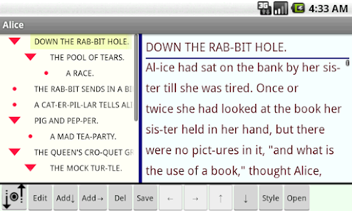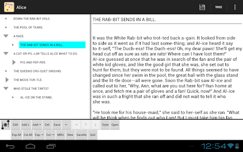 "Halna 아웃 라이너는"두 개의 창, 트리 부분에 대한 하나 메모 부분을 가지고 개요 프로세서입니다.