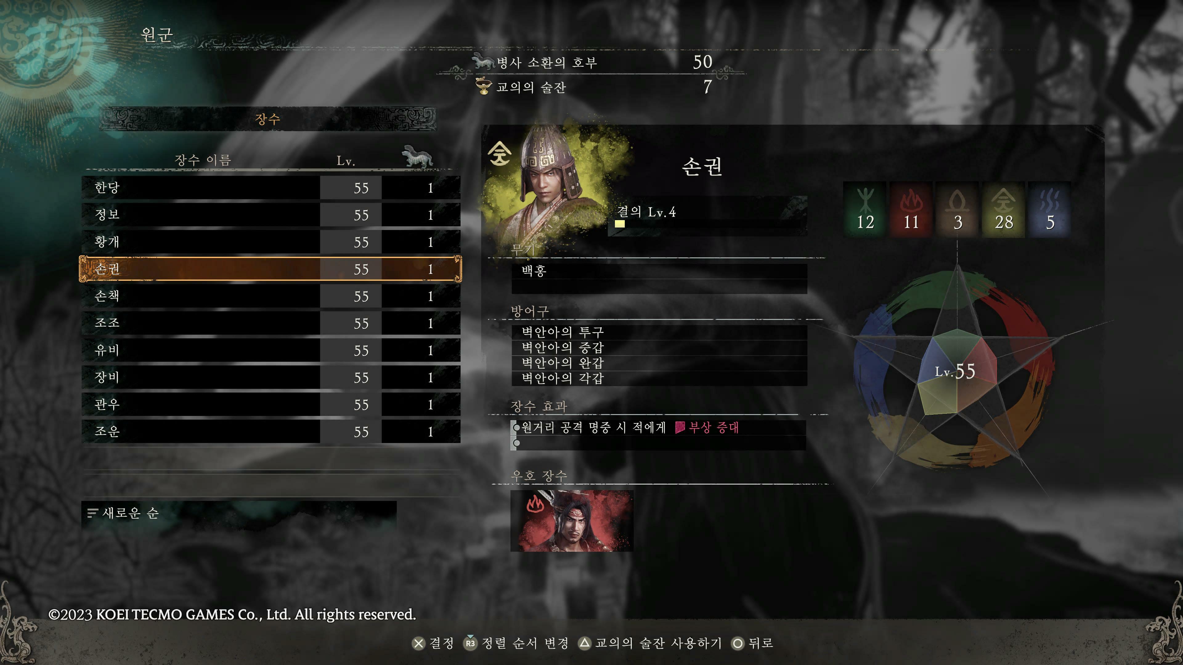 그런 걱정을 하고 있던 분이 계시다면, 한시름 놓아도 되겠다는 말씀을 드리고 싶습니다. ‘와룡’에서는 꽤나 다채로운 장수들을 원군으로 부를 수 있는데, 황개/정보/한당 같은 오나라 충신 3인방 외에도 순욱, 곽가와 같은 책사 또한 아군으로 불러 함께 전투를 치를 수 있습니다. 거기에 플레이 도중 침입해 오는 적 장수들까지 고려한다면, 상당히 많은 수의 삼국지 인물들이 등장한다고 이야기할 수 있습니다.