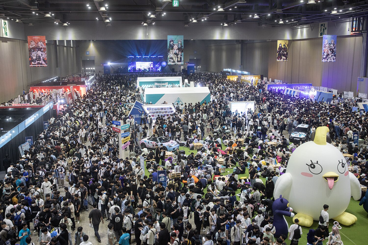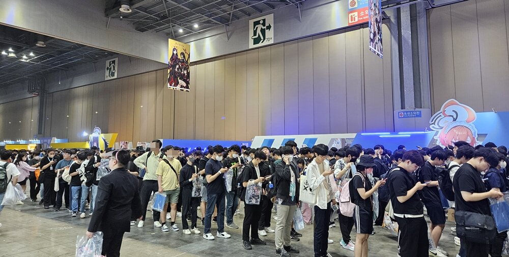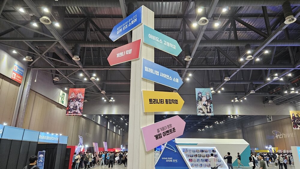 입장 확인 절차를 마친 뒤에 행사가 개최되는 1전시장 3홀로 들어서면, 게임 속 모모프렌즈 마스코트들과 함께 크기로 압도하는 대형 페로로 조형물, 그리고 블루 아카이브 캐릭터 스티커로 꾸며진 튜닝 자동차와 바이크가 전시된 포토존이 참관객들의 눈길을 사로잡는다. 페로로 조형물과 함께 인증샷을 남기거나 빈백이 넉넉하게 마련된 휴식 공간에 앉아 다음엔 어떤 부스를 방문할 것인지 미리 동선을 계획하는 등 다양한 방식으로 행사를 즐기는 유저들의 모습을 확인할 수 있었다.