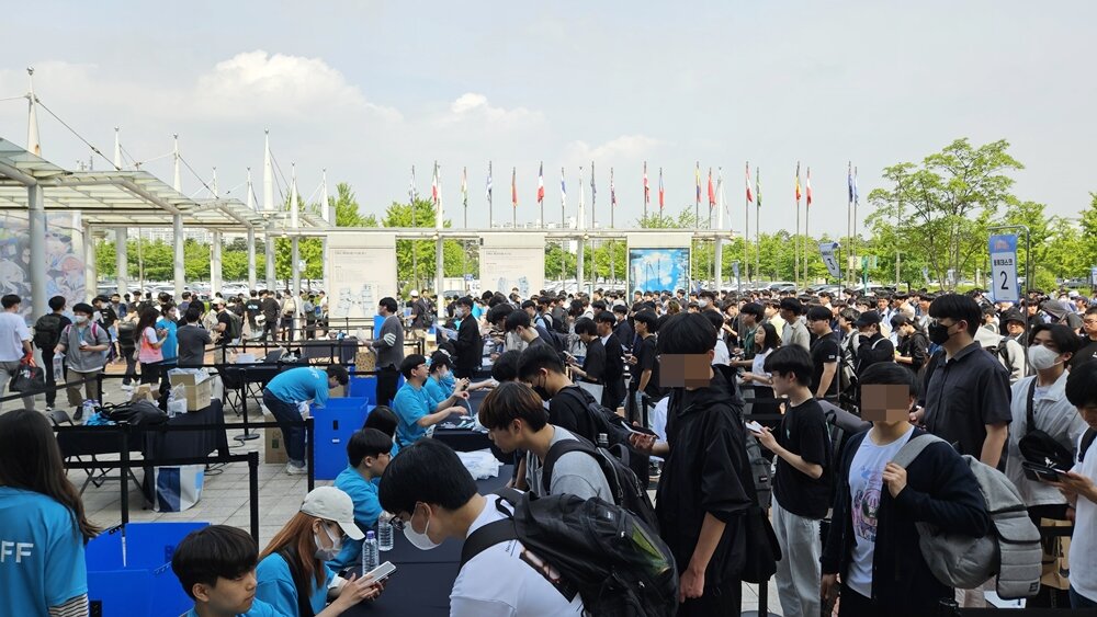 블루 아카이브 1.5주년 페스티벌은 입장권 판매 개시 후 7분 만에 준비된 입장권 7,000장이 모두 매진될 정도로 유저들의 뜨거운 관심이 모인 행사다. 이러한 인기를 증명하듯 행사가 개최된 킨텍스 1전시장은 이른 아침부터 블루 아카이브의 1.5주년을 기념하기 위해 현장을 찾아온 ‘선생님’들로 가득 채워졌다.