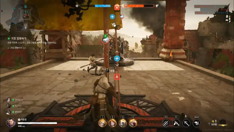 또한, ‘워헤이븐’은 앞으로도 여러 맵마다 배치되어 있는 각종 오브젝트를 통해 저마다 다른 전략이나, 접근 방식이 필요하도록 플레이어를 독려할 계획입니다. 이번 시연에서는 신규 맵인 ‘시한’의 쟁탈전을 경험할 수 있었는데, 이 맵의 특징은 대포로 A거점을 공격하면 바닥이 무너져 거점의 위치가 달라지는 것입니다. 무너져 내린 거점은 부활 거점과 아주 가까이 위치하고 있기 때문에 전투의 양상이 달라져, 전과 다른 방식의 접근이 필요했습니다.