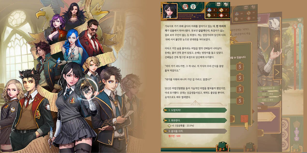 = 영향을 받았음을 부정하지는 않겠다. 다만, 그렇다고 해리포터를 베낀 그런 게임은 아니다. 게임의 콘셉트나 비주얼은 서양풍이지만, 오히려 게임 내 콘텐츠라고 해야 할까. 설정이나 이런 건 동양, 그중에서도 한국적인 느낌이 강하다. 예를 들자면 게임 내에서 학생들은 중간고사, 기말고사를 보기도 하고 각종 동아리 활동을 하기도 하는 등 우리의 학창 시절을 떠오르게 한다.