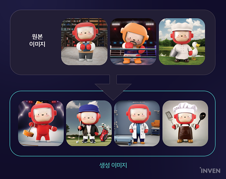 윤민식 = 저희가 사용하는 생성형 AI 기술은 이미지 분야입니다. 그중에서 스테이블 디퓨전이라고 하는 오픈소스 모델을 기반으로 하고 있고요. 여기에 저희의 독자적인 기술력을 더했습니다. 쉽게 말하면 게임사에서 10장 미만의 이미지를 갖고 파인 튜닝해서 자기만의 스타일로 이미지를 생산할 수 있게 해주는 기술이라고 생각하면 됩니다.