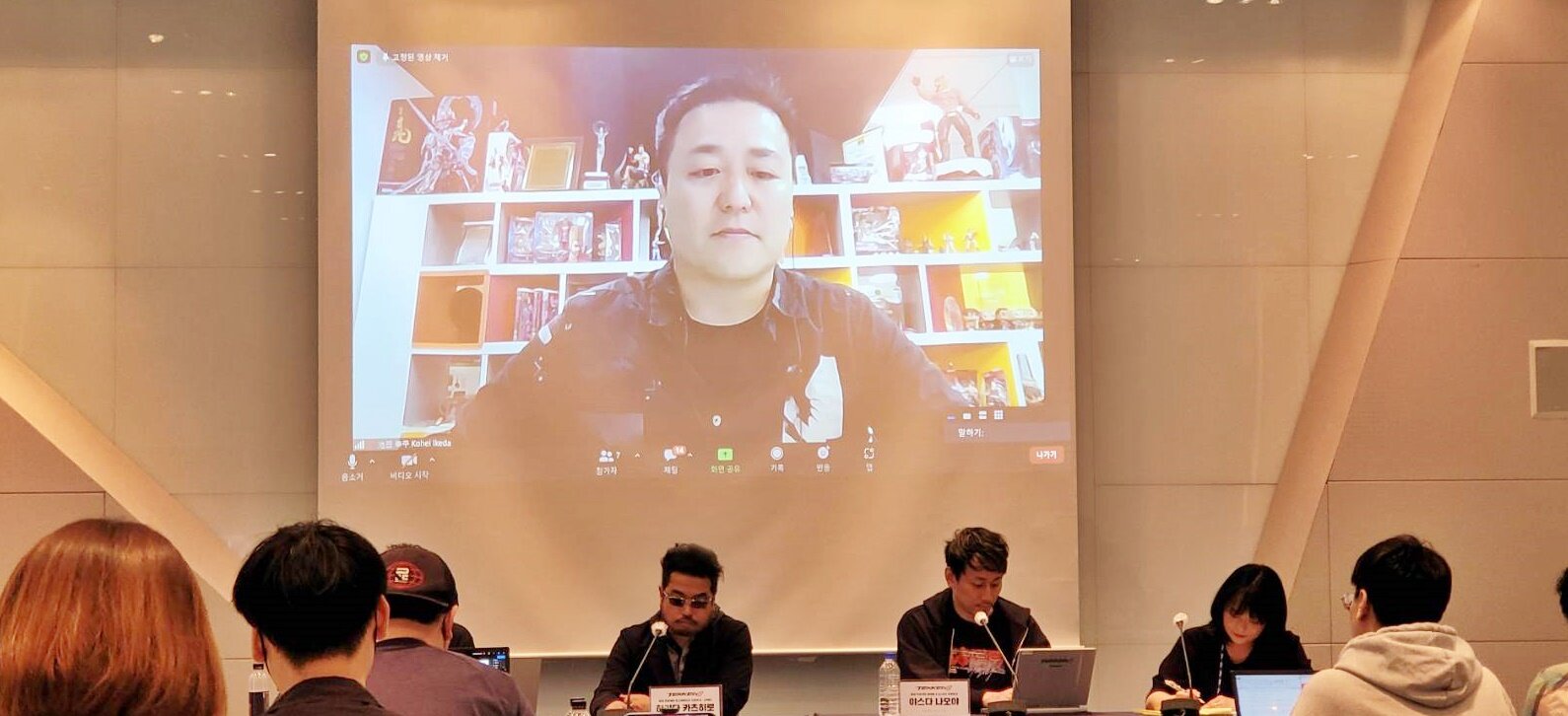 그렇게 부스를 둘러보고, 마지막 스케쥴을 위해 킨텍스 3층의 미팅룸으로 향했다. 사실 플레이엑스포는 핵심 개발자들이 방문하기보단 게이머들이 놀고 즐기는 쪽에 더 맞춰진 행사인데, 반다이남코가 힘을 빡 줬다. 무려, 하라다 카츠히로 PD를 데려왔다. 그리고 마케팅&e스포츠 프로듀서인 ‘야스다 나오야’, 미처 한국에 오지 못해 온라인으로 참석한 ‘이케다 코헤이’ 디렉터까지 참여한 상태로 인터뷰가 시작되었다.