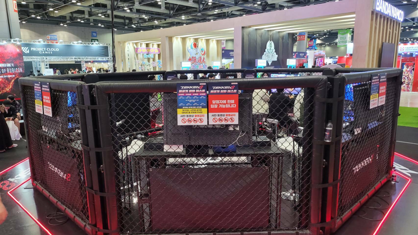 바로 옆의 닌텐도도 분명 대단히 잘 만들어진 부스였지만, 반다이남코는 인상깊은 디자인으로 눈길을 사로잡았다. 지스타처럼 몇백 부스 크기를 만드는 행사는 아니기에 규모가 엄청난 건 아니지만, 행사장 한복판에 옥타곤을 만들어 둘 줄이야. 철권8의 비공개 알파 테스트가 진행된 이 옥타곤은 사진조차 찍기 어려웠다. 찍었다가 바로 잡히고, 게임 화면이 안 나왔다는걸 보여주고서야 풀려났다.