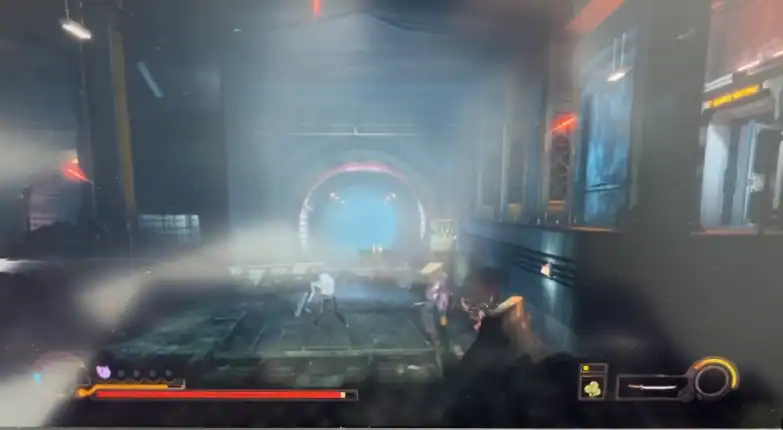 보스전은 짧은 분량의 컷신과 함께 시작됐는데요. 생각보다 보스가 보여주는 패턴이 다양했고 플레이어의 움직임에 반응하면서 공격한다는 느낌을 줬습니다. 가령, 멀리 떨어지면 공중으로 점프해서 에너지를 쏜다거나 혹은 돌진을 했고 가까이에 붙으면 일반 3타 혹은 강력한 찌르기 공격을 하는 방식입니다.