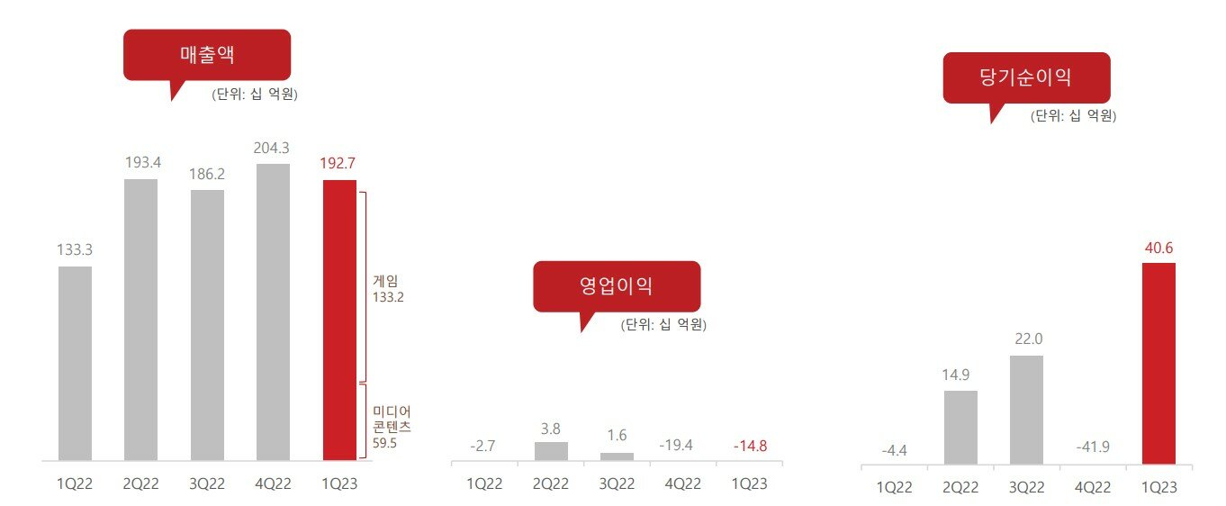 – 2023년 1분기 영업이익 -148억 원 (전분기, 전년 기준 적자지속)