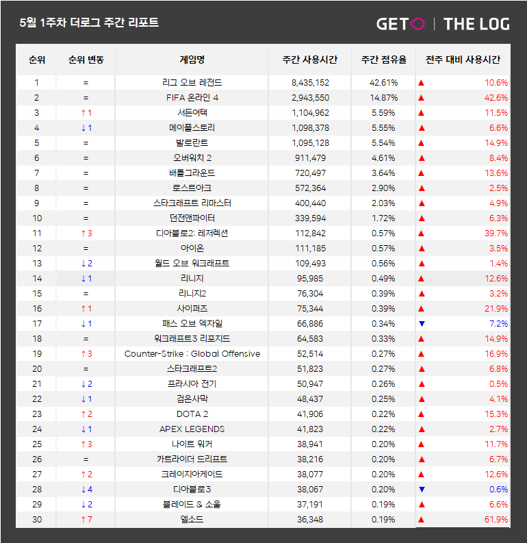 ■ 국내 PC방 순위 – 5월 1주 PC방 주간 리포트