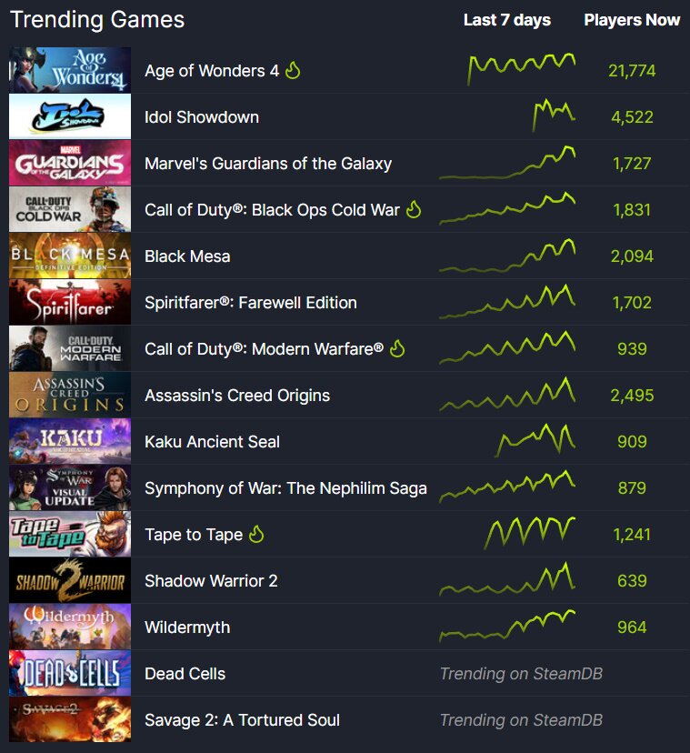 ▲ 스팀 트렌드 지표 (자료 출처: SteamDB)