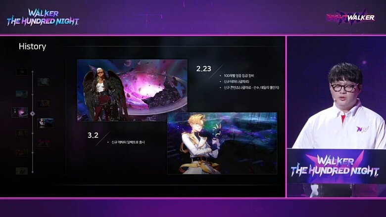 이어서 “오늘은 나이트 워커의 100일을 기념하고 또 축하하는 자리이기도 하지만 또 한편으로는 오랫동안 사랑받는 게임으로서 나아가기 위한 중요한 전환점이기도 하다. 이러한 전환점의 일환으로 오늘부로 저는 나이트 워커 대표 디렉터의 자리에서 한 걸음 물러나고자 한다”고 전했다. 박주형 전 디렉터는 앞으로 개발팀의 일원이 되어 나이트 워커 개발에 더욱 전념할 예정이다.