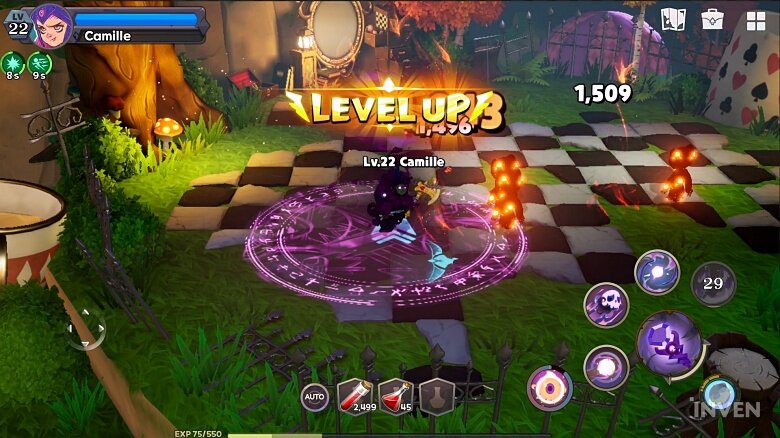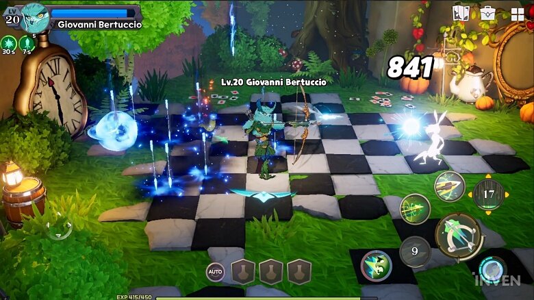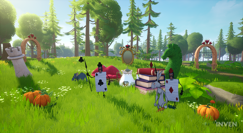 최영윤 = 원더랜드가 동화적인 배경이 있다 보니 여러가지 놀 수 있는 콘텐츠를 넣어뒀습니다. 예를 들어 원작에 보면 티 파티를 하는 공간이 있는데 저희도 각 지역마다 유저끼리 전투가 아니라 망치로 때려서 상대방을 경기장 밖으로 날리면 점수를 얻는 것들이 있습니다. 이런 구역은 따로 로딩을 하는 게 아니라 맵마다 구역이 마련되어 있는 게 특징입니다.
