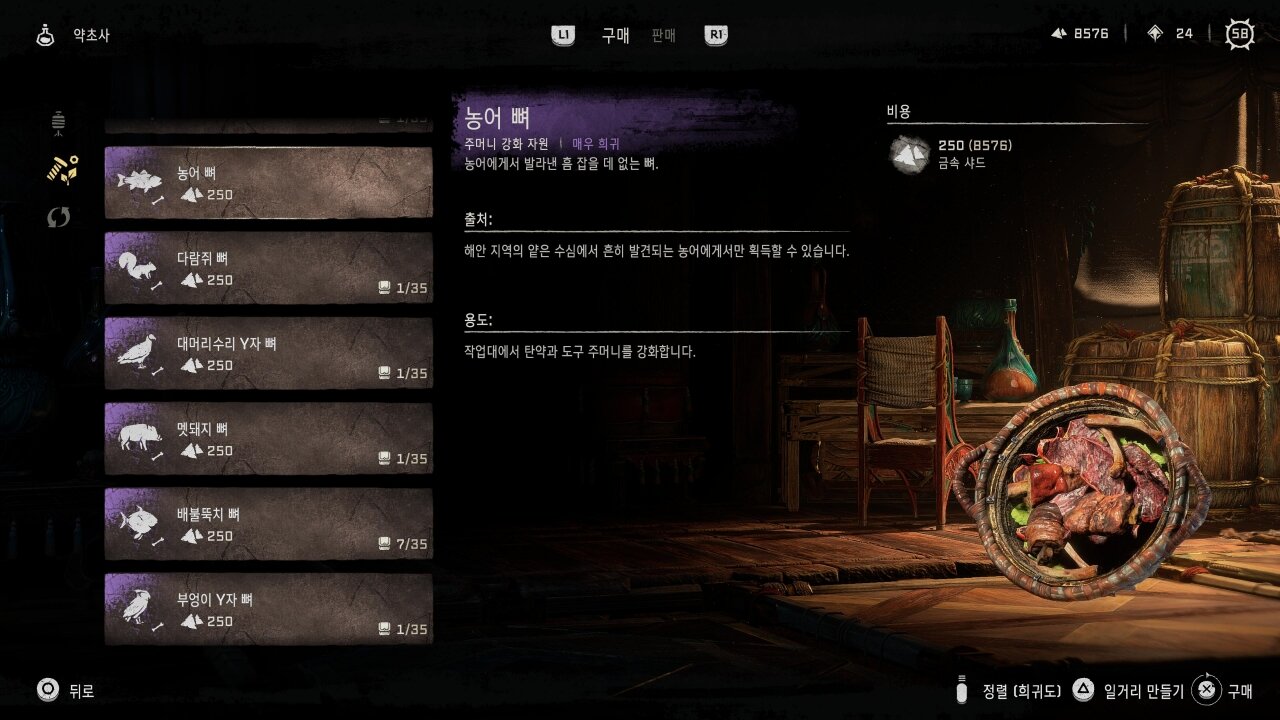 심지어, 이번 DLC는 본편에서 많은 노가다를 하지 않았거나, 전설 무기를 얻지 못한 플레이어도 어느 정도 배려하는 편의성 요소를 추가해 둔 점이 눈에 띄었습니다. 신규 지역에서 처음 등장하는 거점 지역의 포션 상인은 거의 대부분의 사냥감 재료 아이템을 판매하는데, 일정량의 샤드를 지불하면 그동안 사냥이 귀찮아서 업그레이드 하지 못한 주머니를 확장할 수 있습니다. 특히, 본편의 새나 물고기 사냥이 대단한 귀찮았던 것을 떠올리면, 꽤나 마음에 드는 DLC라는 생각이 들지 않을 수 없습니다.