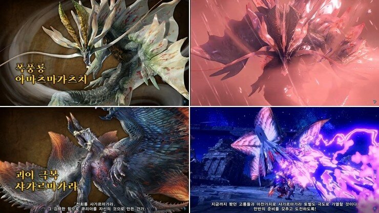 이번 업데이트의 신규 몬스터는 2종이다. 우선 ‘폭풍룡 아마츠마가츠치’는 옥천향 필드에서 등장하며 폭풍과 벼락을 활용해 헌터를 공격한다. 또한, 거대 회오리를 만들어 중심으로 끌어들이거나 헌터들을 모두 하늘 위로 띄운 후 회오리를 사방으로 흩뿌리는 공격도 존재해 이와 같은 특수 기믹에 대처할 방법을 찾을 필요가 있어 보인다.