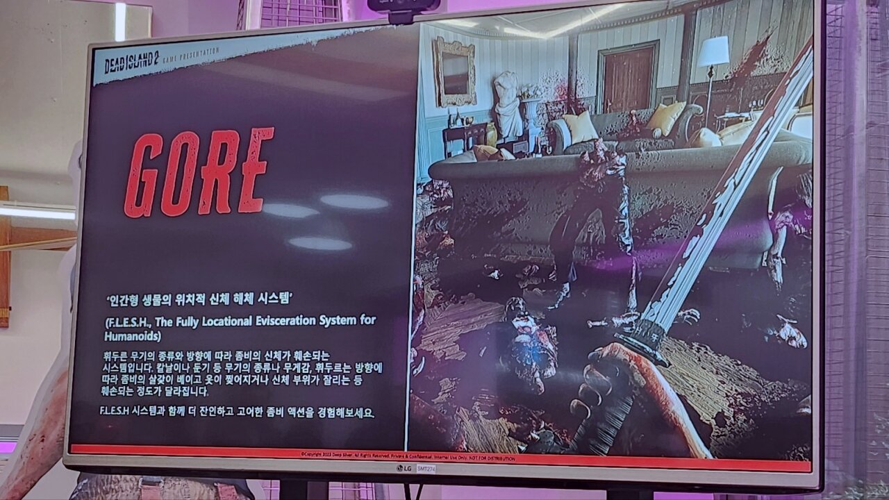 = 2018년, 데드 아일랜드의 후속작을 개발할 기회를 받았을 때 가장 신경썼던 것은 전작에서 중시되었던 근접 액션을 어떻게 효과적으로 구현할 수 있을지였다. 1인칭 근접 액션을 완전히 새로운 경험으로 발전시키기 위해 많은 고민이 필요했고, 그 과정에서 ‘FLESH’ 시스템 등이 고안됐다.