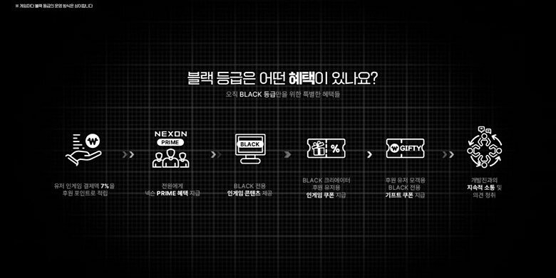 Q. 블랙 등급의 혜택에서 수익률이 늘어나는 것 외에도 개발자들과 만남도 있던데 이는 좀 파격적인 것 같다. 이에 대한 설명과 함께 추가로 크리에이터들에게 더 이득이 가거나 넥슨에서 크리에이터의 콘텐츠들을 활용할 수 있는 방안 같은 것도 준비하고 있나?