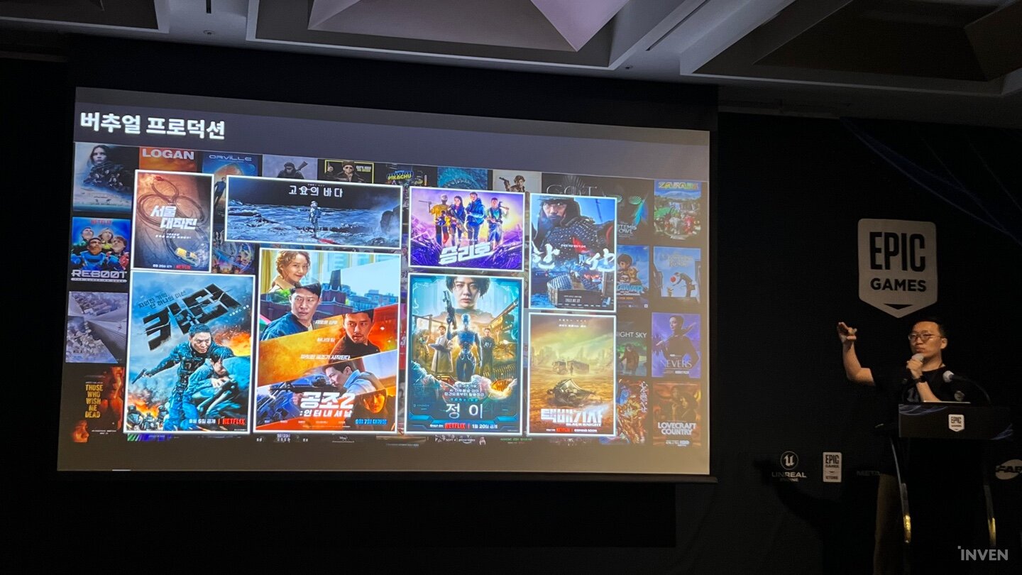 미디어 및 엔터테인먼트 분야에서 언리얼 엔진을 다각도로 활용되고 있다. 신광섭 본부장은 언리얼 엔진을 활용한 가장 좋은 사례로 ‘버추얼 프로덕션’을 꼽았다. 실제 세트장을 지을 곳을 드론으로 사진으로 찍어둔 뒤 언리얼 엔진을 활용해 세트장을 가상으로 제작, 현장을 사전에 체크할 수 있을 뿐만 아니라 촬영도 미리 가상으로 진행해 리테이크의 위험을 줄이고 작업의 효율을 높일 수 있다는 것이다.
