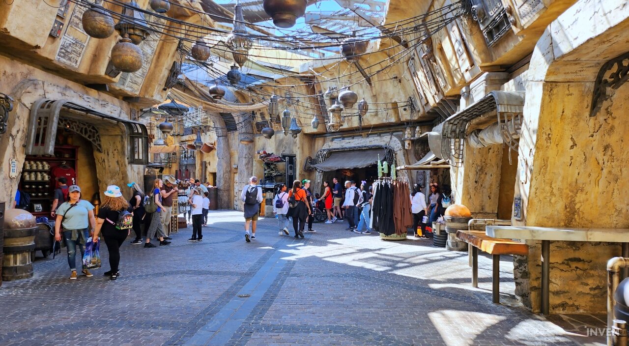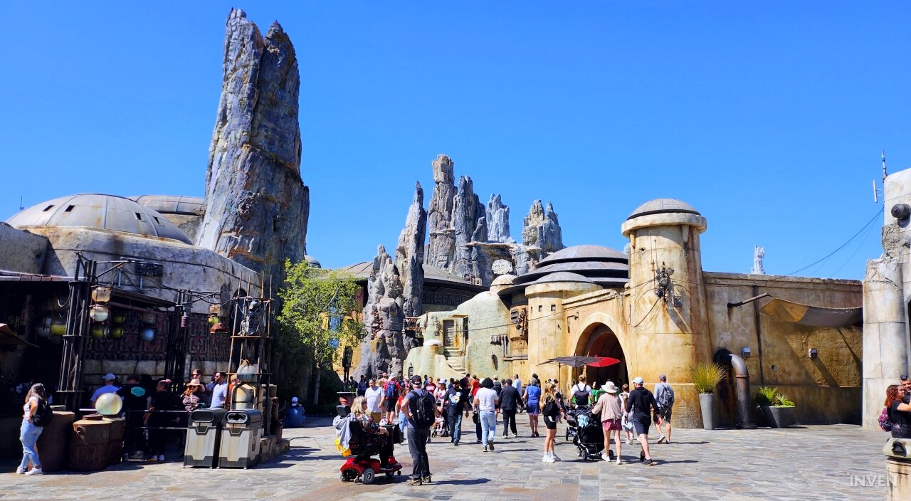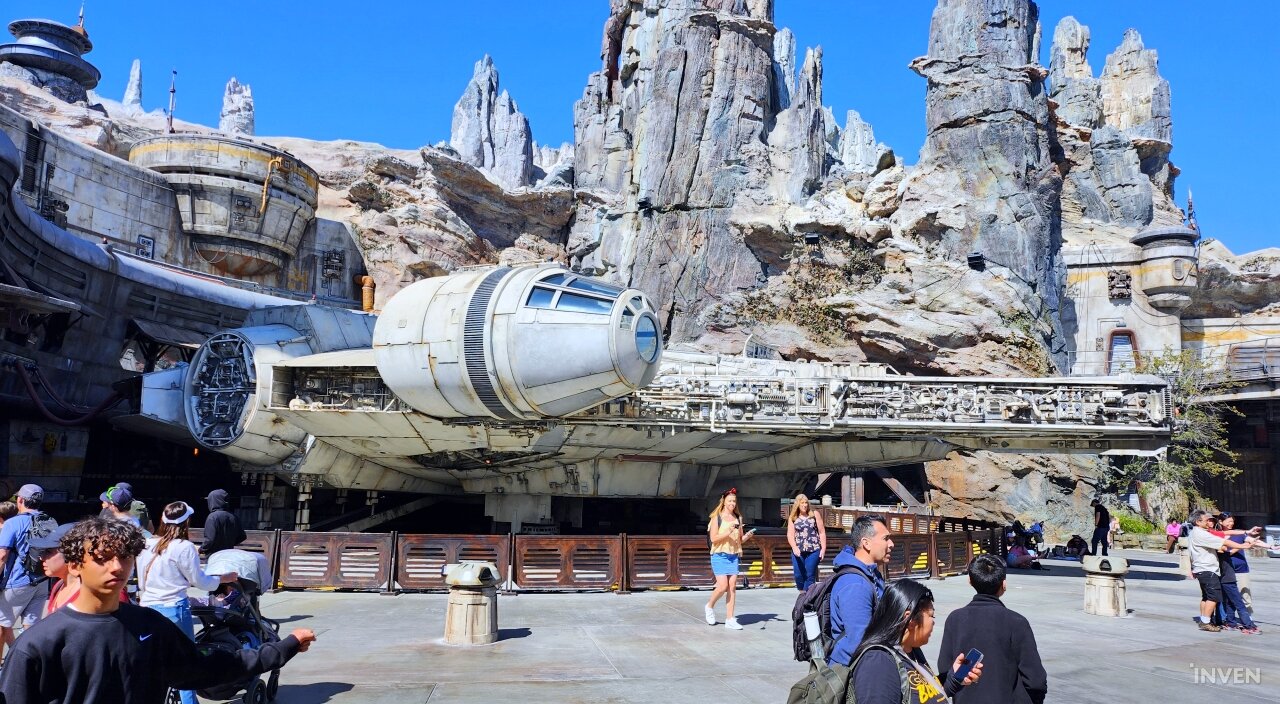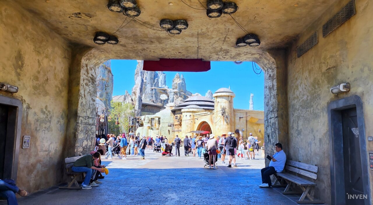이번 출장의 목적을 고려해, 이곳에 있는 대부분의 시간은 ‘갤럭시즈 엣지(Galaxy’s Edge)’에서 보내기로 마음먹었다. 스타워즈 테마로 꾸며진 이 공간은 타투인 행성에서나 볼 법한 건축물들로 꾸며져 있고, 곳곳에 타이 파이터나 밀레니엄 팔콘, X-윙 같은 시리즈 전통의 기체들의 모형으로 장식되어 있다. 때때로 퍼스트 오더의 스톰트루퍼와 카일로 렌으로 분장한 이들이 순찰을 돌며 관광객과 의사소통을 나누기도 한다.