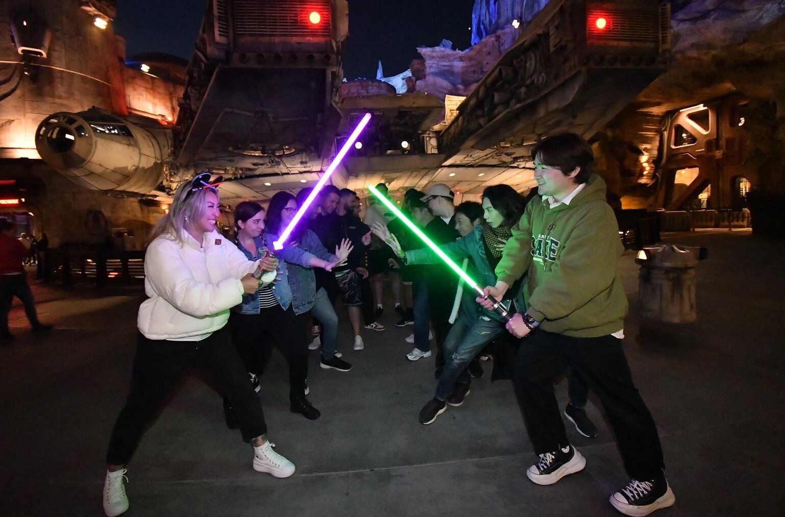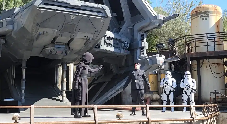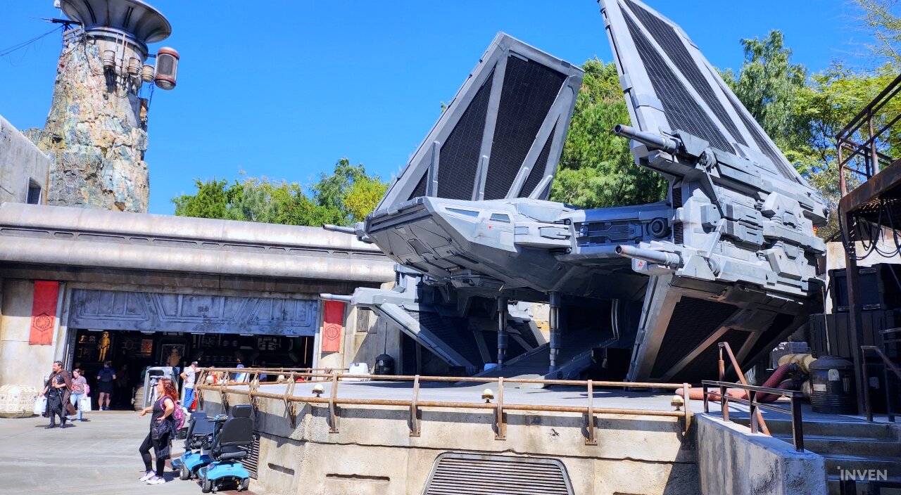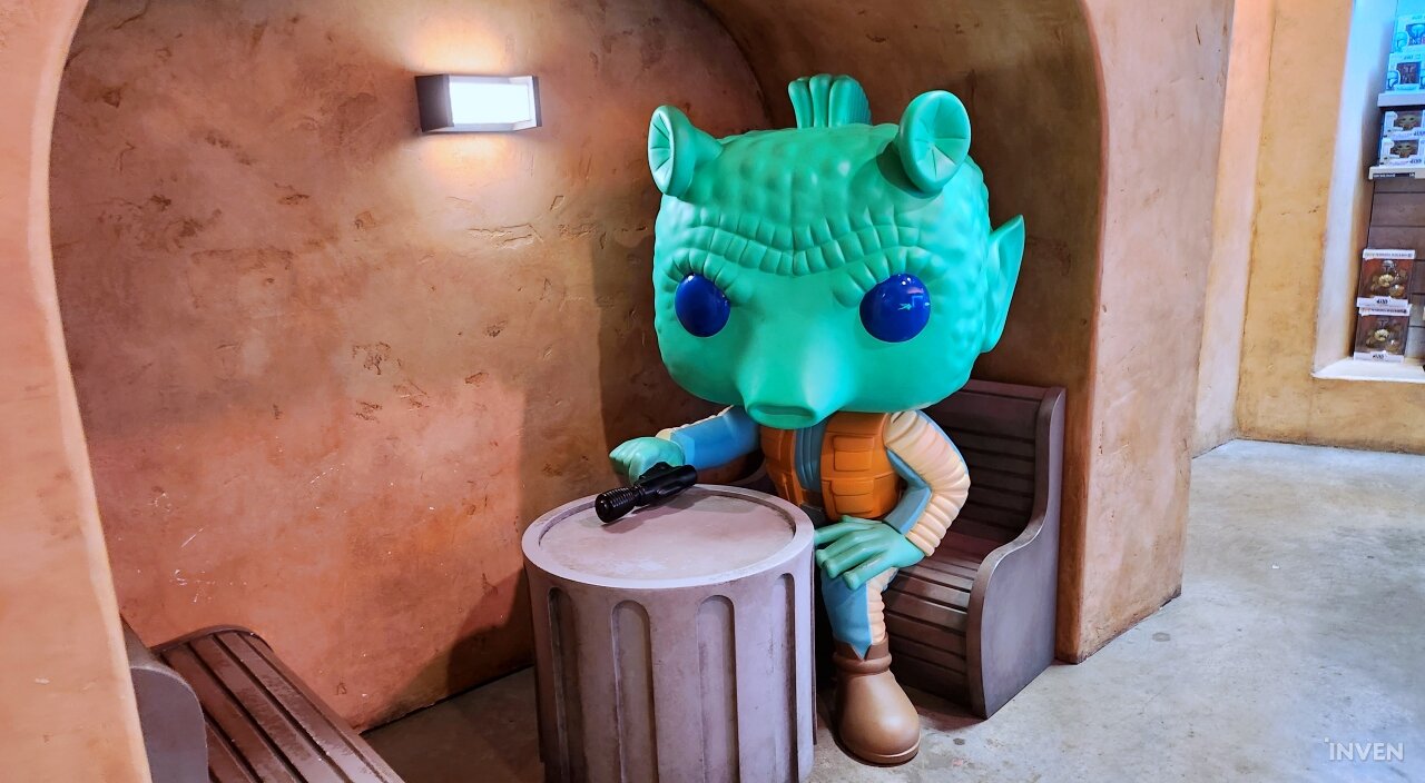 이번 출장의 목적을 고려해, 이곳에 있는 대부분의 시간은 ‘갤럭시즈 엣지(Galaxy’s Edge)’에서 보내기로 마음먹었다. 스타워즈 테마로 꾸며진 이 공간은 타투인 행성에서나 볼 법한 건축물들로 꾸며져 있고, 곳곳에 타이 파이터나 밀레니엄 팔콘, X-윙 같은 시리즈 전통의 기체들의 모형으로 장식되어 있다. 때때로 퍼스트 오더의 스톰트루퍼와 카일로 렌으로 분장한 이들이 순찰을 돌며 관광객과 의사소통을 나누기도 한다.