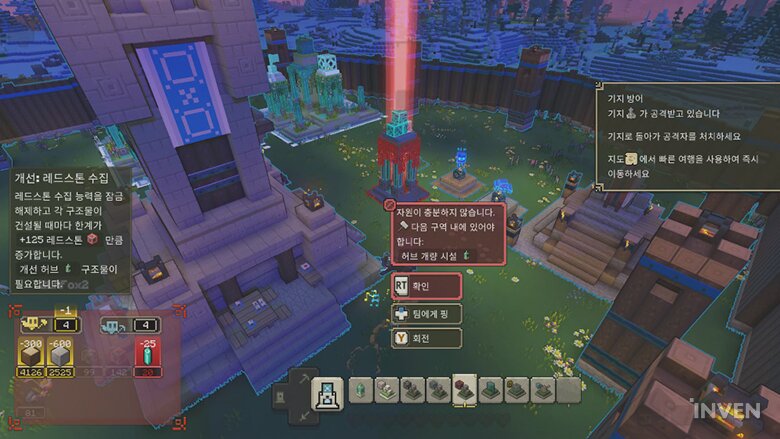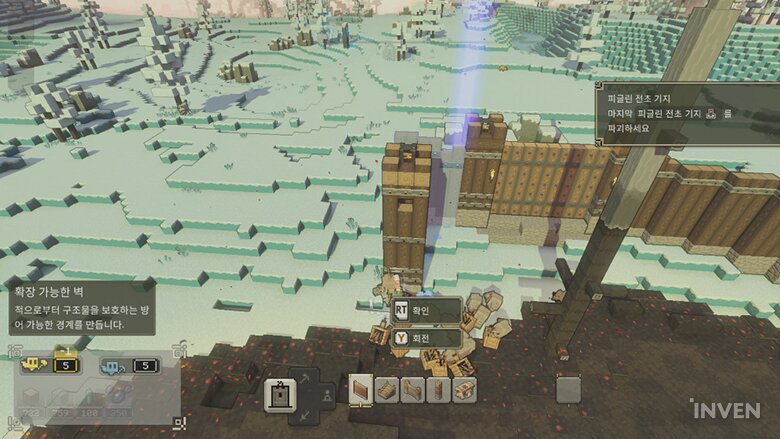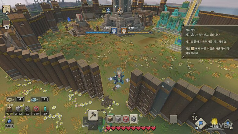 그리고 마인크래프트 자체의 특징적인 측면을 꽤나 살려냈습니다. 특히 자유로운 건설, 건설을 위한 자원 수집이라는 마인크래프트하면 빼놓을 수 없는 특징을 말이죠. 물론, 전략 게임이라는 측면에 맞춰 훨씬 편리하게 가져왔습니다.