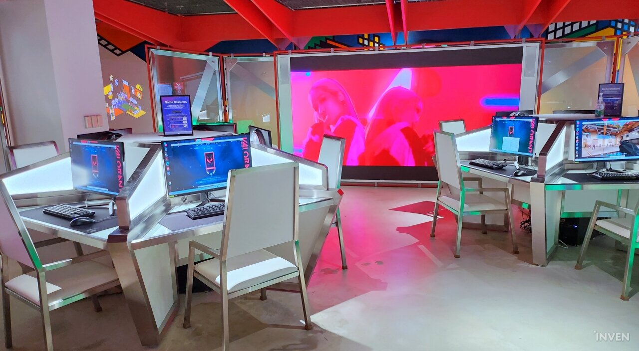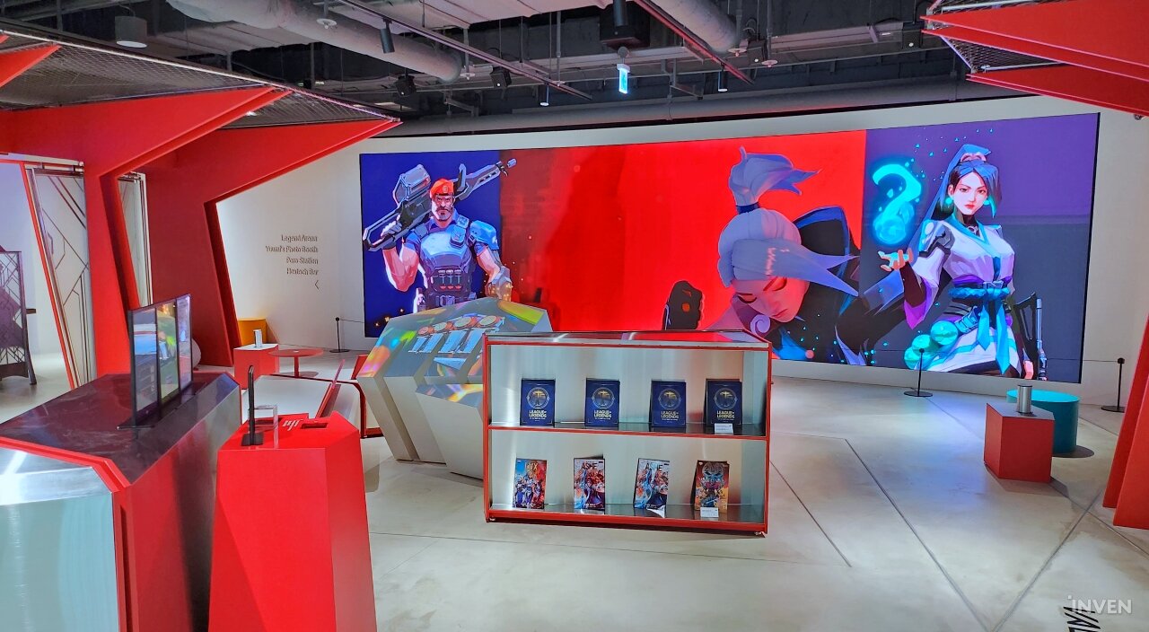 게임 미션을 위한 공간 외에도, ‘라이엇 아케이드’에는 면세점을 돌아다니며 지친 다리를 쉴 수 있는 공간과 함께, 재미있는 게임 내 이모저모를 알아볼 수 있는 스크린 등 각종 즐길 거리가 존재합니다.