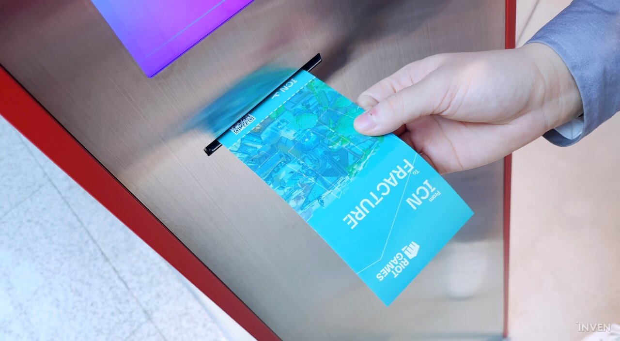먼저, 라이엇 아케이드에 입장하면 인천공항에서 룬테라 지역 중 한곳으로 가는 비행기 티켓(?)을 발급받습니다. 티켓 뒤에는 체험 공간 안에서 즐길 수 있는 놀거리가 설명되어 있고, 중앙에 위치한 펭구의 모습이 완전해질 때까지 스탬프를 찍는 미션을 수행하게 됩니다.