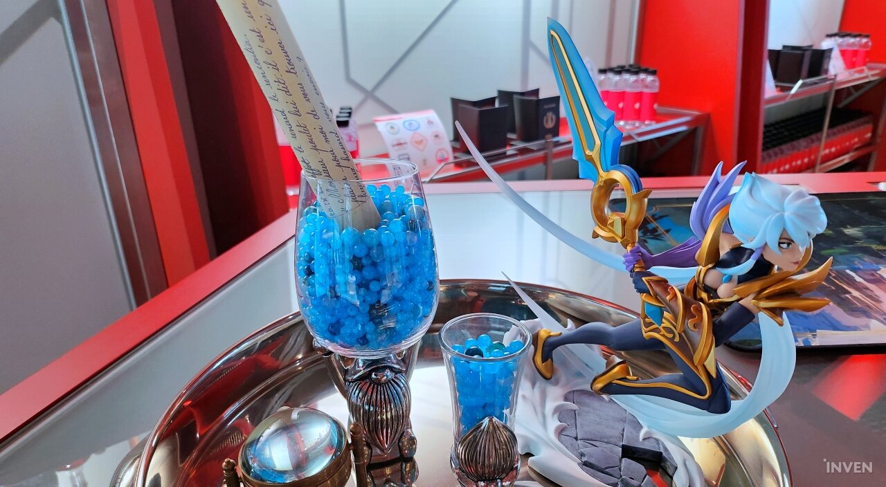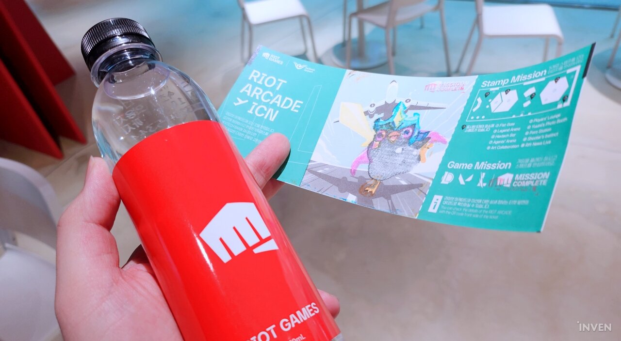 라이엇 아케이드 전시 공간을 돌아다니며 티켓에 모든 스탬프를 찍고 나면, 지도상 전시장 가장 왼편에 위치한 ‘빌지워터 바’에 가서 라이엇 게임즈 로고가 붙은 물병 하나를 얻을 수 있습니다.